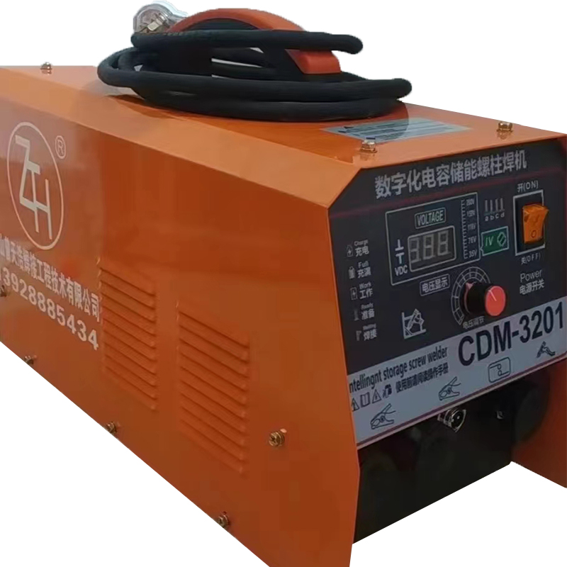 儲能式螺柱焊機可將螺柱、內螺紋螺柱、銷釘?shù)阮愃频脑赣诮饘俟ぜ?。在焊接過程中,通過元件尖端放電使儲能電容放電,放電時間0.001-0.003秒,不需要氣體或陶瓷環(huán)保護,熔深約0.1MM。